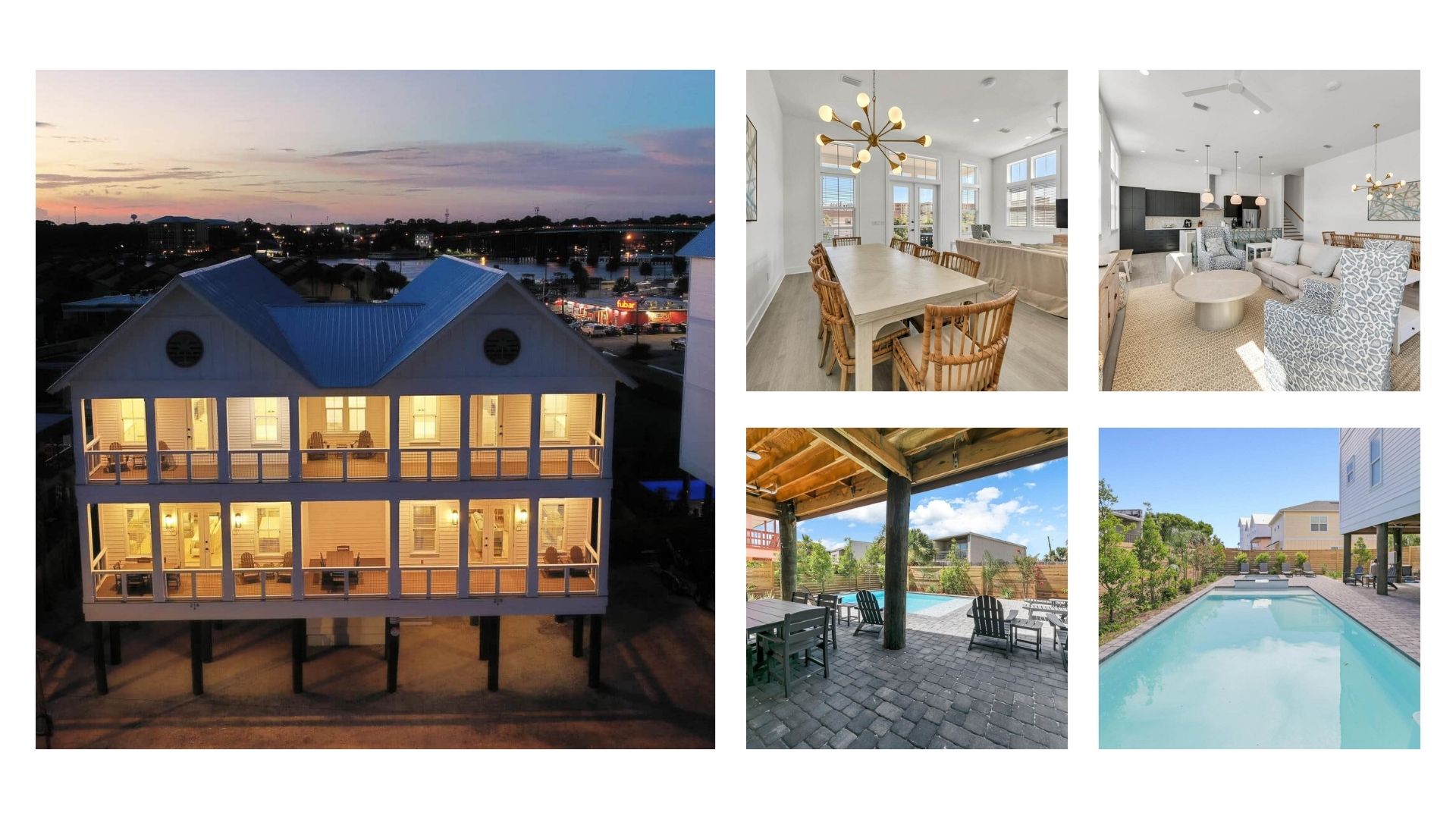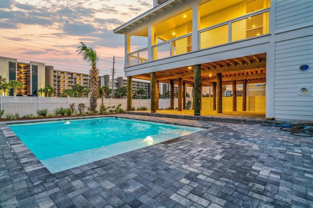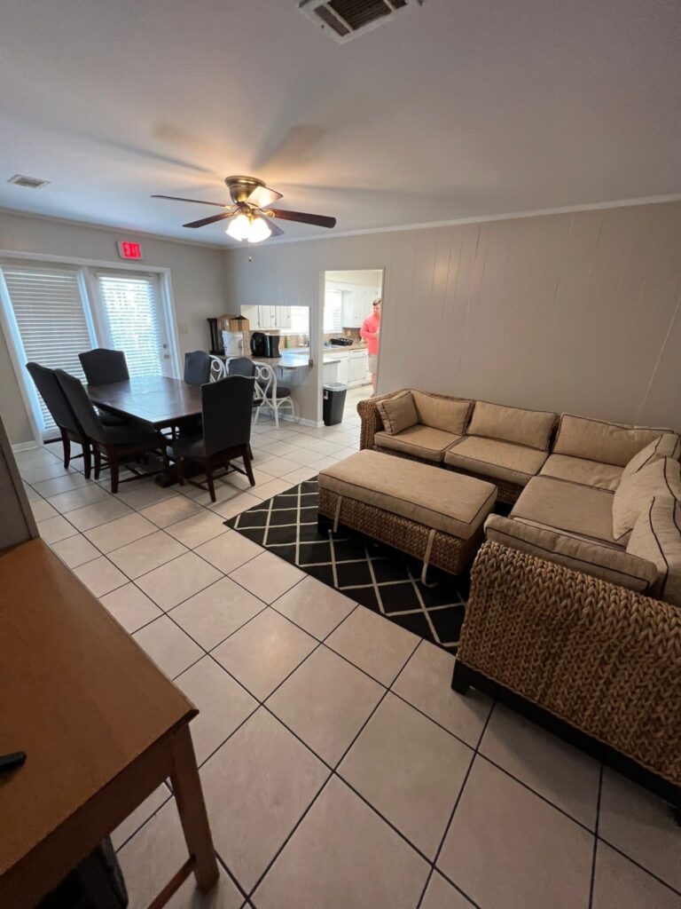 This housing option is a multi-level vacation home with a private pool and patio. Located just steps away from Beach Access #1 on Okaloosa Island, this home offers beautiful views of the Gulf of Mexico and the intracoastal waterway from the balconies on the third floor. The common area living room features 12′ ceilings, a kitchen island with bar seating, a dining room table, and covered patios overlooking the pool. Our student-athletes love this option for its luxurious amenities and proximity to the beach and local attractions.