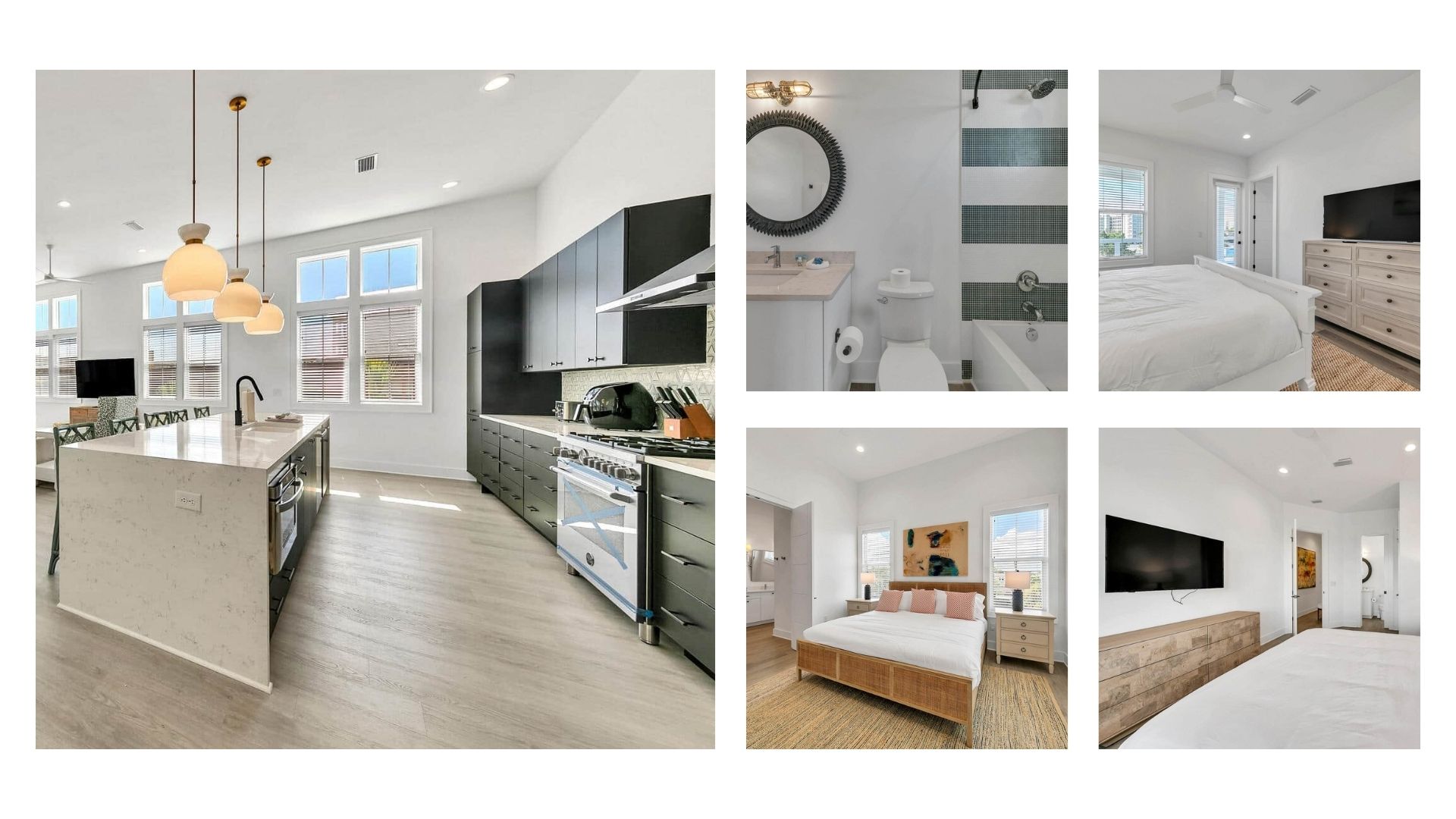 One of our most popular options is one of our Team Houses. We have different options, but all include , bedrooms, bathrooms, full kitchens, big screen TVs, and lounge areas.